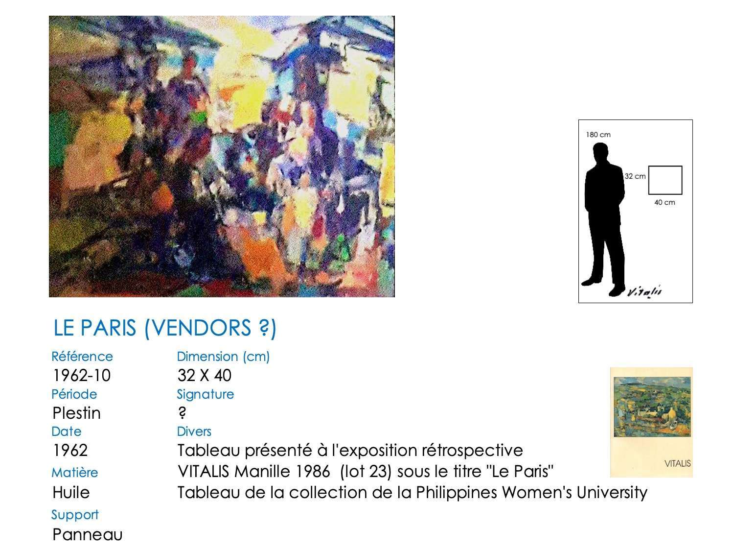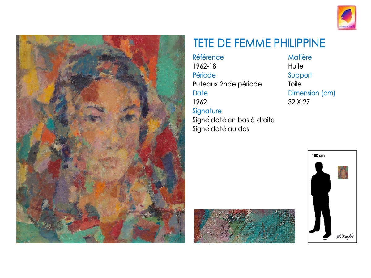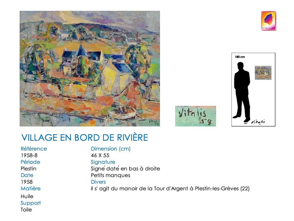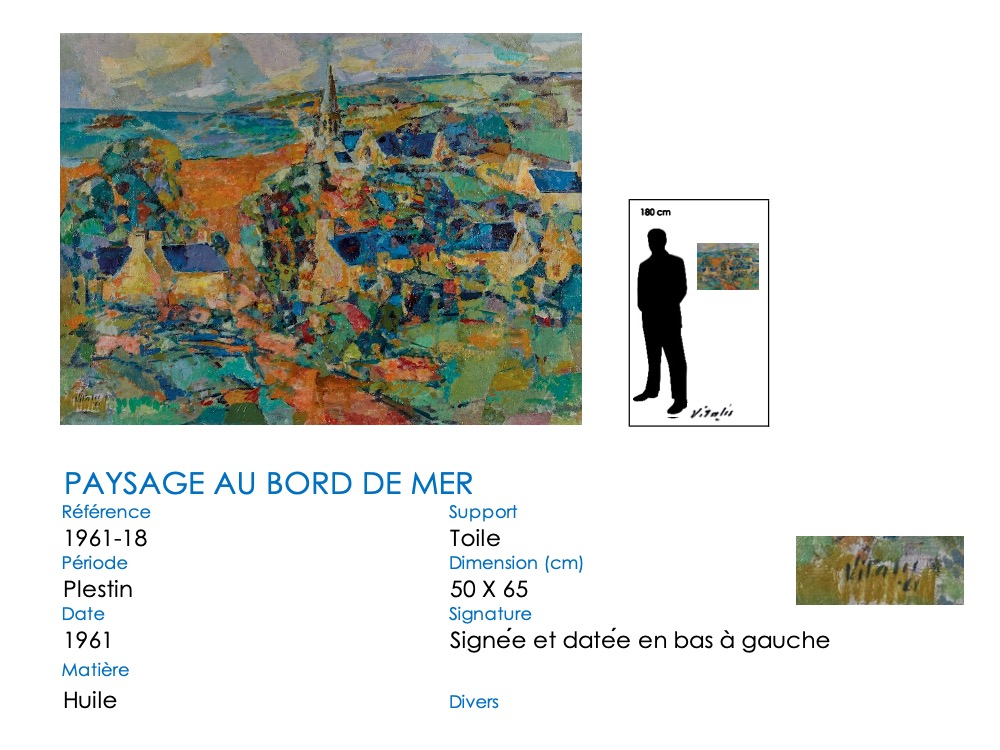 À partir de 1957, VITALIS s’installe définitivement dans le Trégor breton, à Plestin-les-Grèves. Son style va évoluer, passant du cubisme à une alliance cubiste-impressionniste. Il continue cependant à regagner régulièrement Paris pour proposer des toiles à Camille Renault qui les expose dans ses restaurants « Big Boy » et au « Bateau de pierre » ( voir article consacré à Camille Renault et Vitalis). En 1962, il assiste à plusieurs représentations de la troupe folklorique philippine, les « Bayanihan », au Théatre de Paris. Séduit, mais aussi nostalgique, VITALIS suit la troupe lorsqu’elle repart aux Philippines : en décembre 1962, VITALIS retrouve son pays natal 44 ans après l’avoir quitté.