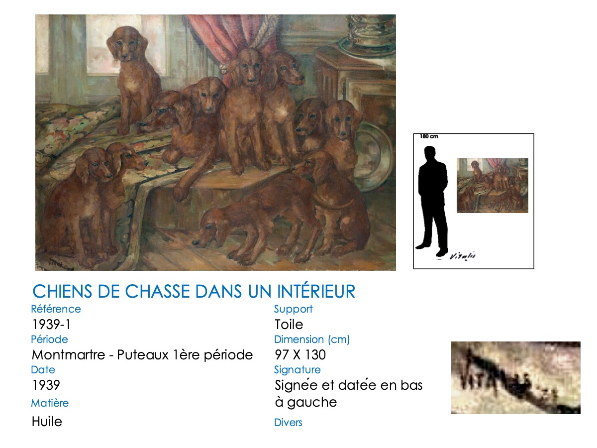 Chiens de chasse dans un intérieur – hst – 1939