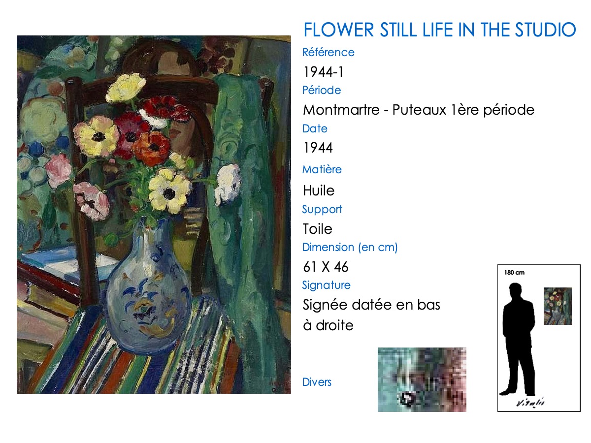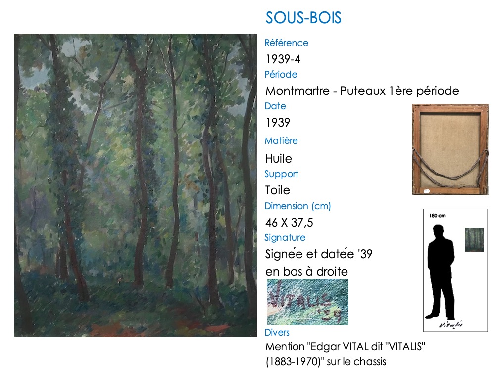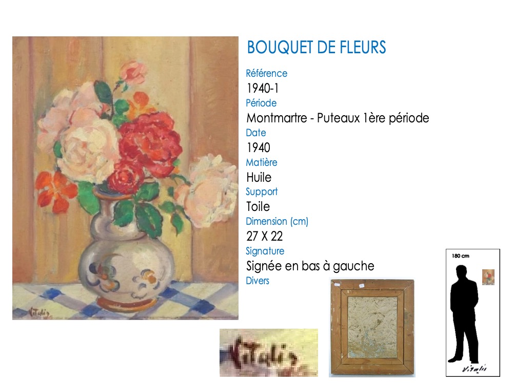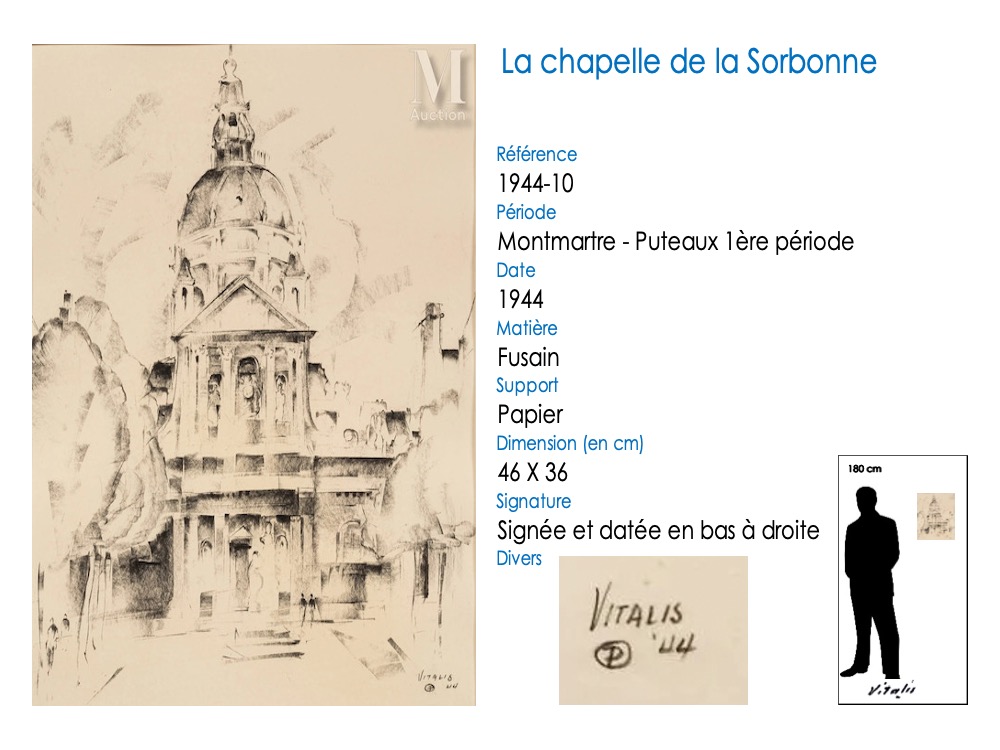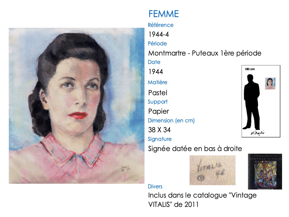 À son arrivée à Paris en août 1925, VITALIS s’installe comme de nombreux artistes à Montmartre. Il va appartenir à l’École de Paris, son style reprenant un mode figuratif. Il met en avant ses qualités dans le dessin, mais ce sont des années très difficiles financièrement. VITALIS rencontre le groupe cubiste de la « Section d’Or » à Puteaux en 1935-1936, auprès de qui son talent artistique va se développer. À la fin de 1941, en raison de sa nationalité américaine, il se voit interné par les allemands dans le camp de prisonniers de Compiègne pendant plus de deux ans, jusqu’en août 1944 .