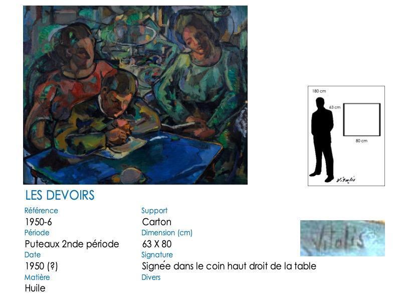 This is a good size painting (63 cm high x 80 cm wide), an oil on cardboard. The blue of the table is dazzling, it combines with the green around it, when mom’s red dress highlights the studious student in the foreground. Take a good look: the VITALIS signature is hung on the top right corner of the table… This painting has been presented for sale twice: on April 6, 2013, it was sold in Drouot by ADER at a price of 4,000 euros. Only five months later, the Leon Gallery sells it for 37,600 euros.