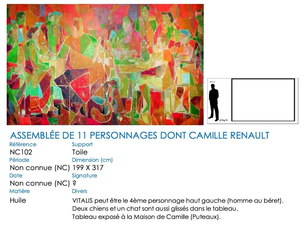 Assemblée de onze personnages attablés dont Camille Renault