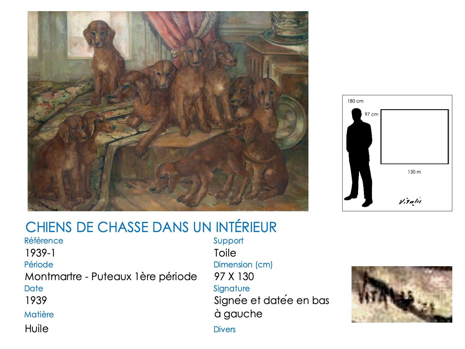 CHIENS DE CHASSE DANS UN INTÉRIEUR – 1939 – vendu 30.000 € en juillet 2015 par Boisgirard-Antonini (Paris)