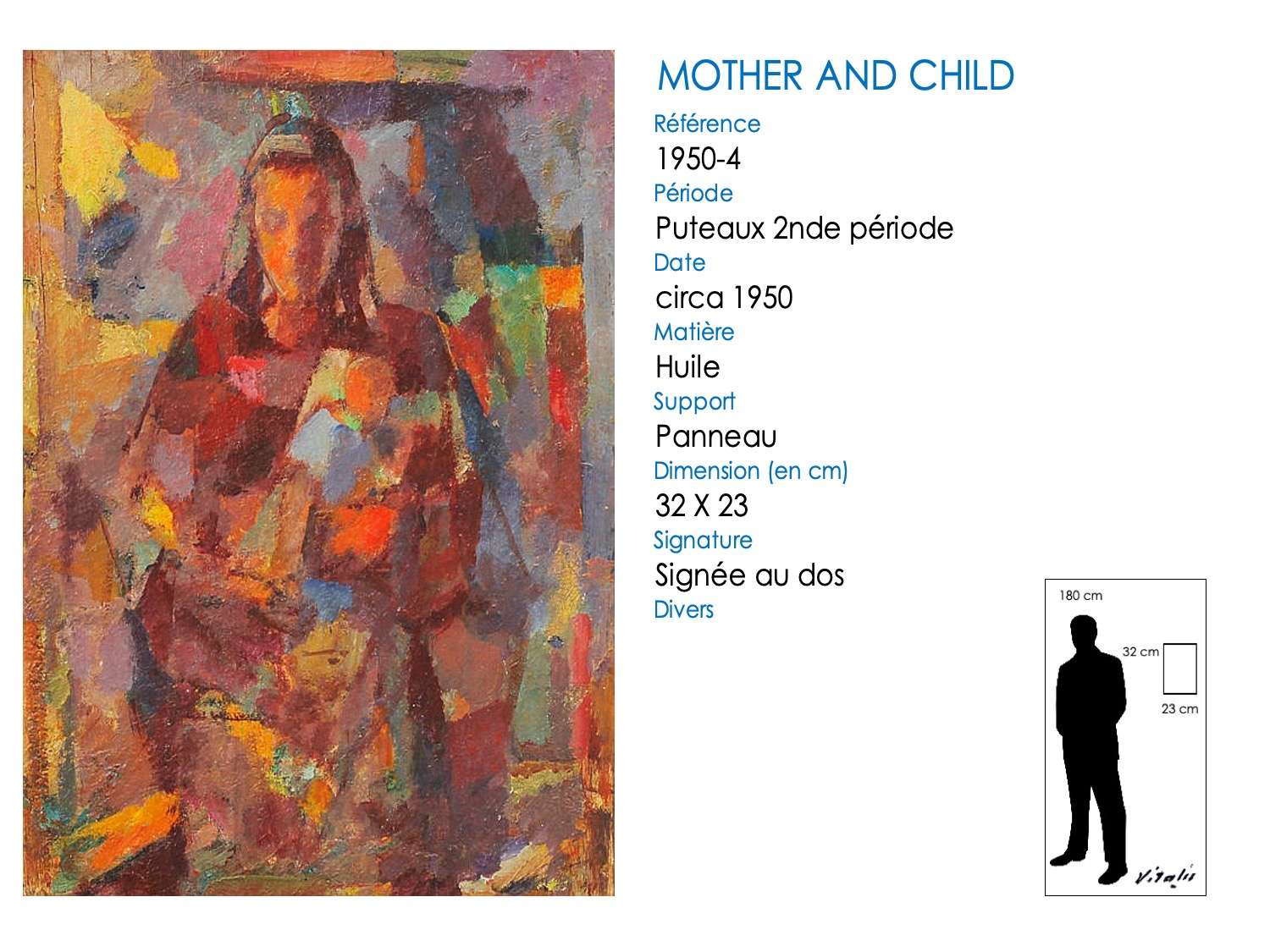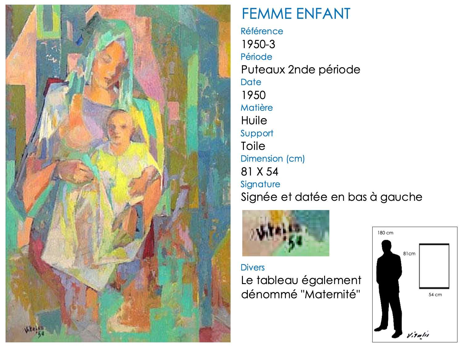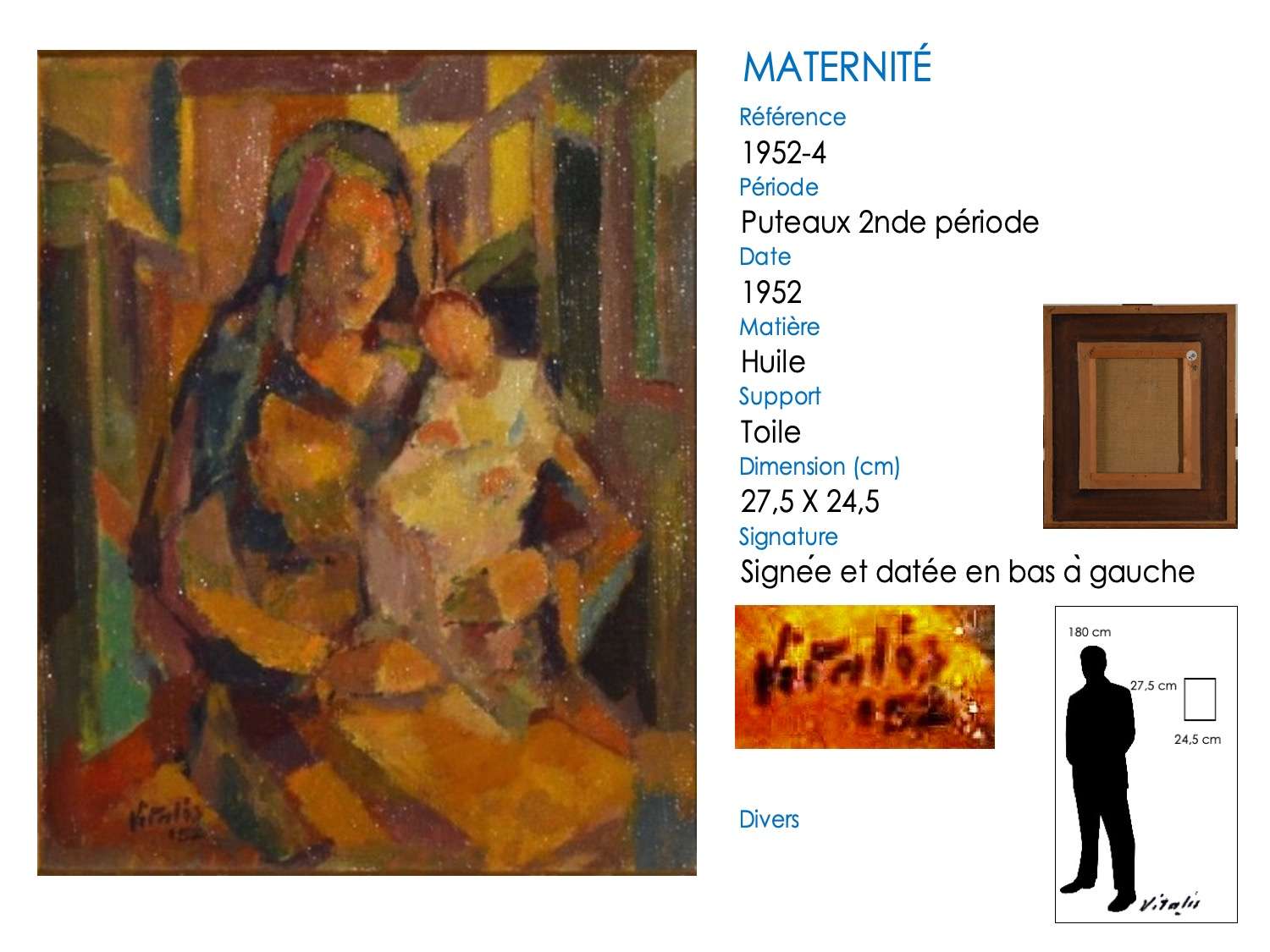 La Maternité est un thème que VITALIS a exploré à partir de 1950 (selon les tableaux connus actuellement), dans toute la diversité de ses styles (cubisme, impressionnisme, pointillisme).