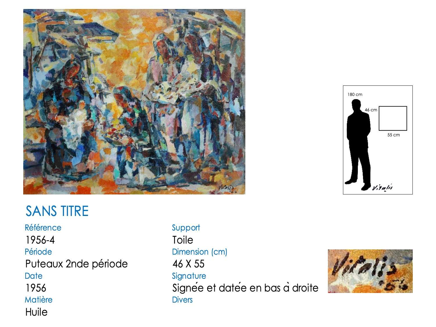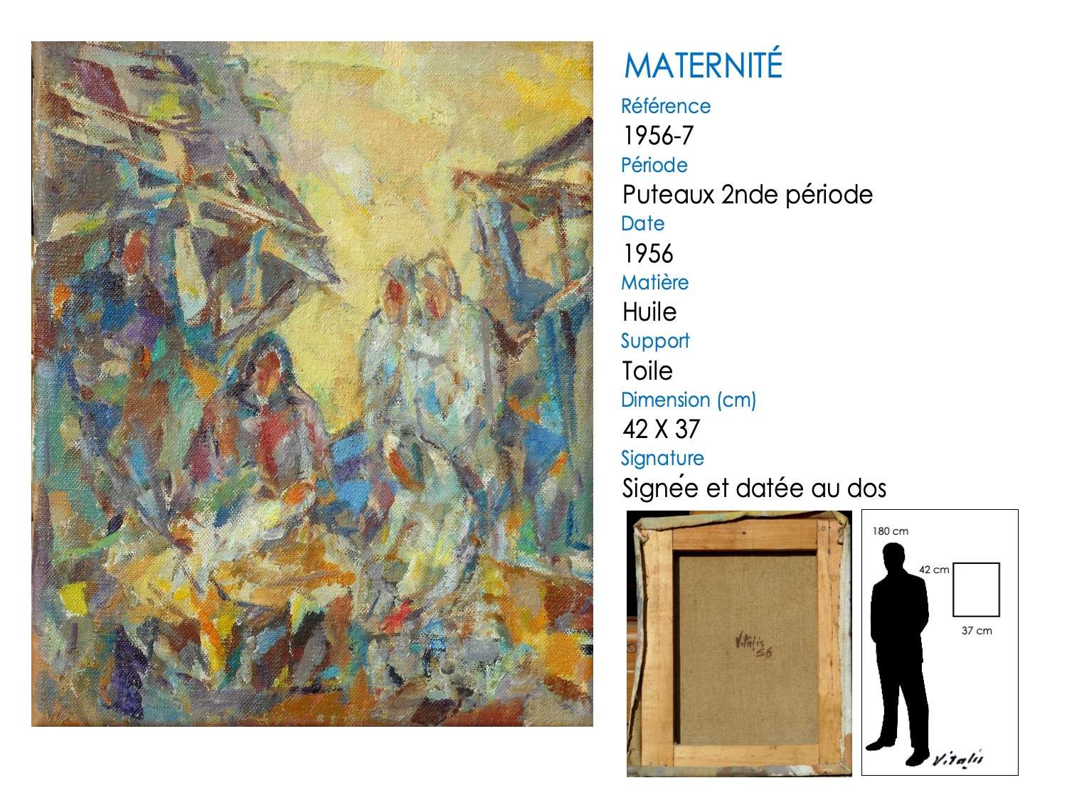 Le thème de la présentation de l’enfant Jésus apparaît à plusieurs reprises dans l’œuvre de VITALIS. Dans une premier temps, la scène est construite avec la Vierge et l’enfant dans l’angle gauche, alors que les visiteurs, souvent au nombre de trois (les rois mages), sont positionnés à droite. Le jaune est la couleur dominante, particulièrement éclatant dans l « Epiphany » de 1962. Puis VITALIS a changé sa construction (« Adoration » ou « Sainte famille » de 1965) en plaçant la Vierge tenant son enfant au centre du tableau.