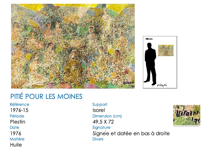 Les thèmes religieux sont apparus tardivement dans l’œuvre de VITALIS, le premier tableau connu datant de 1960 (VITALIS a alors 62 ans). Il a particulièrement étudié trois thèmes : la crucifixion, la maternité et la sainte famille.