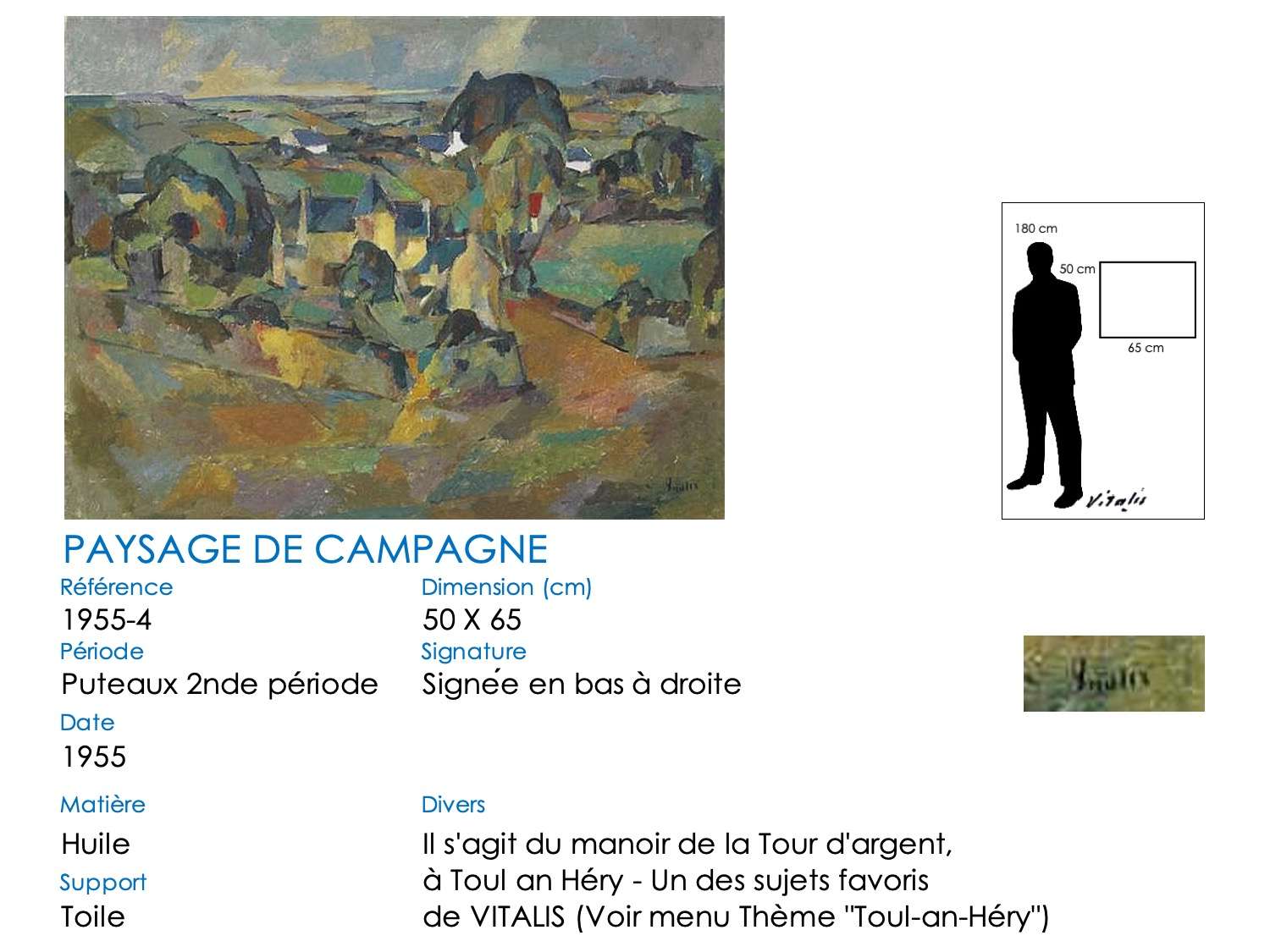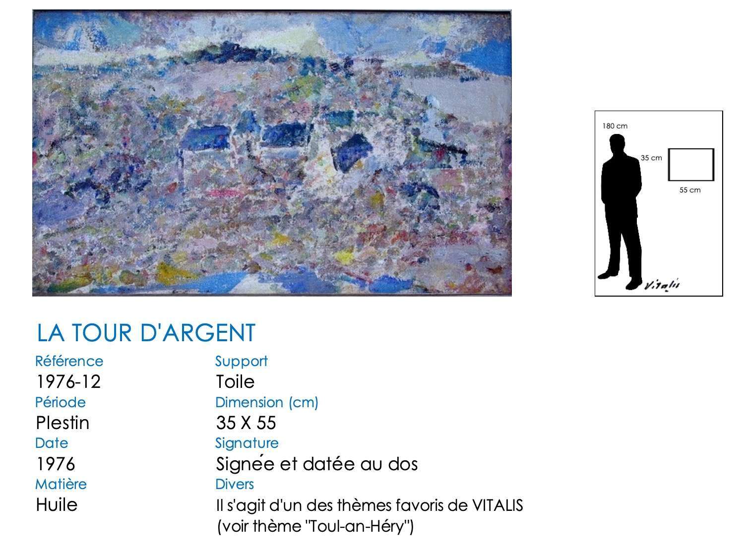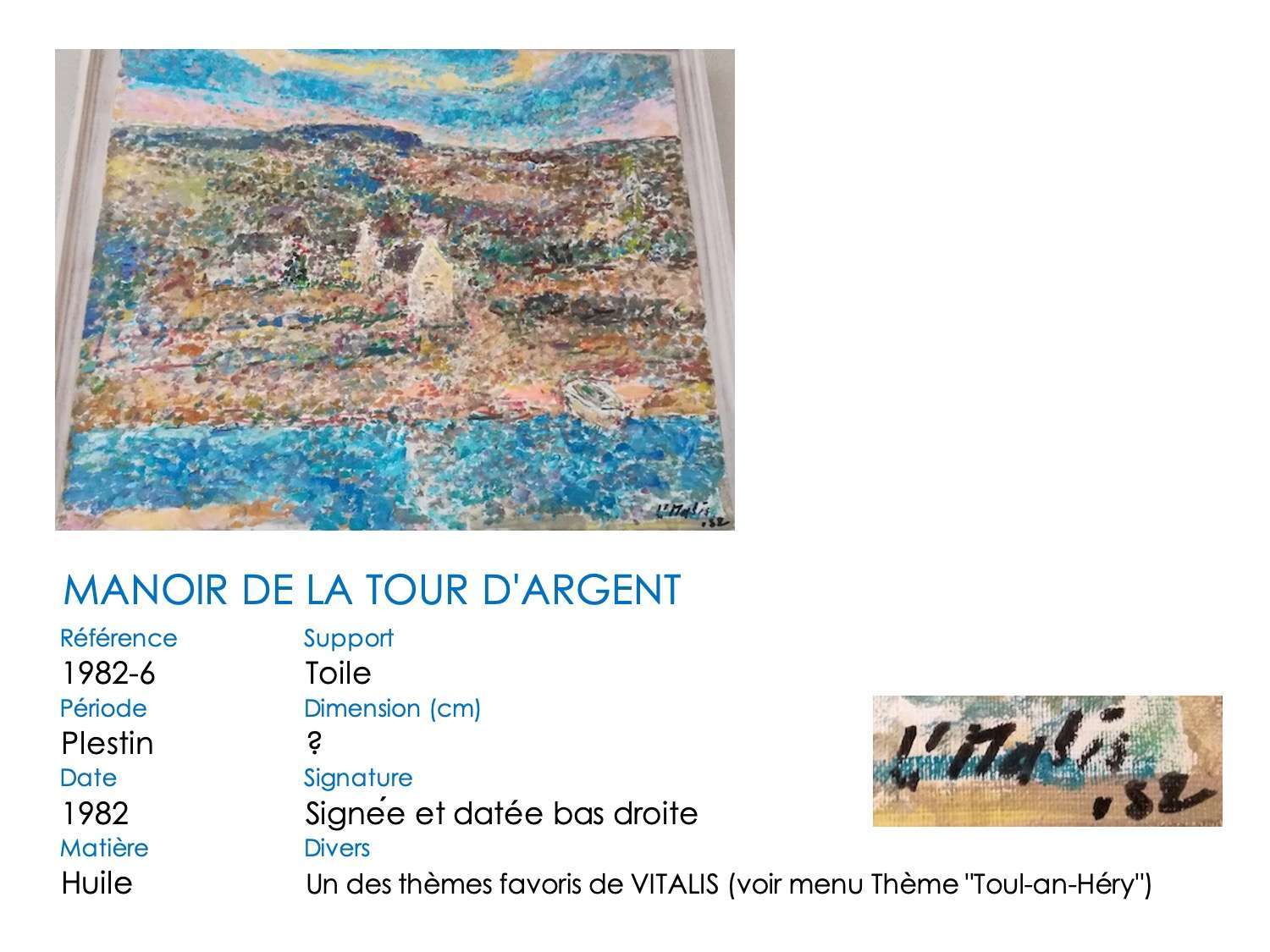 Toul-an-Héry est l’estuaire du Douron, la rivière séparant Plestin-les-Grèves (Côtes d’armor) de Locquirec (Finistère). Ce « fleuve » se déroule en de longs méandres herbeux à partir du pont du Moalic (point où la marée remonte le plus haut dans le Douron) jusque devant le manoir de la Tour d’Argent. Le Douron se jette ensuite dans la mer par l’estuaire de Toul-an-Héry et sa vigie, la balise rouge de Pichodour. VITALIS a peint ses trois lieux à de nombreuses reprises, sur différentes périodes et plusieurs styles.